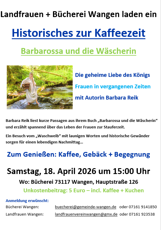 Am Samstag, 18.04.2026 um 15:00 Uhr heißt es in der Bücherei in 73117 Wangen, Hauptstrasse 126
